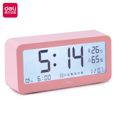 得力8826多功能电子钟(粉色)(只)时间管理器闹钟背光电子钟床头钟 温湿度计功能 学生儿童礼物