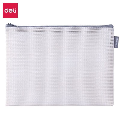 得力63462拉链袋(灰)(10个/包)环保材质文件袋学生用试卷大容量收纳袋耐用网格学科袋文件收纳夹办公用品