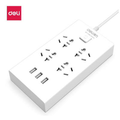 得力YT18282-98插座_4组+3U_2米_彩盒装(白)(只)USB智能插座 插排/插线板/接线板/排插/拖线板
