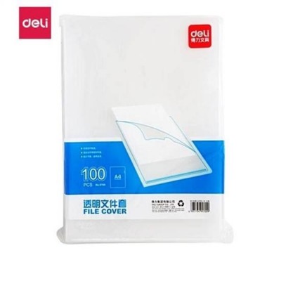 得力(deli) 5700 A4透明文件套单片夹 加厚两页式文件夹 100个/包文件单页夹 办公用品