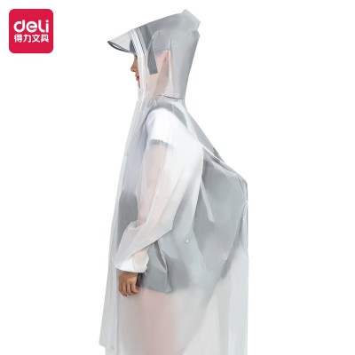 得力16545成人四合一雨衣(透明L)(套)多功能成人雨衣 电动车/自行车/背包/徒步四合一雨衣雨披 自带帽檐反光条防渗水雨衣
