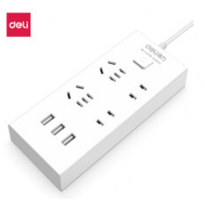 得力YT18281-99插座_2+2+3U_2米_彩盒装(白)(只)安全插座/插排/插线板/接线板/排插/拖线板