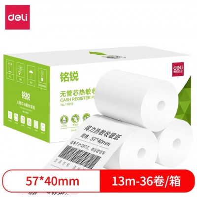 得力11819 无管芯收银纸57mm*40mm(白)(36卷/箱)