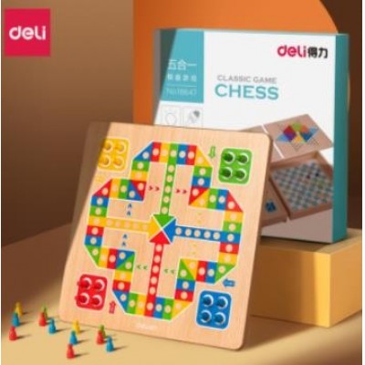 得力18646飞行棋+跳棋二合一棋(原木色)(盒)早教益智玩具木制男女孩生日礼物