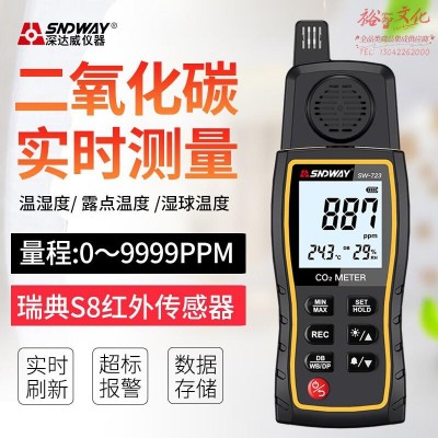 深达威二氧化碳检测仪红外CO2浓度测试仪手持家用大棚气体监测仪 SW-723SKU:yzwhyp870565