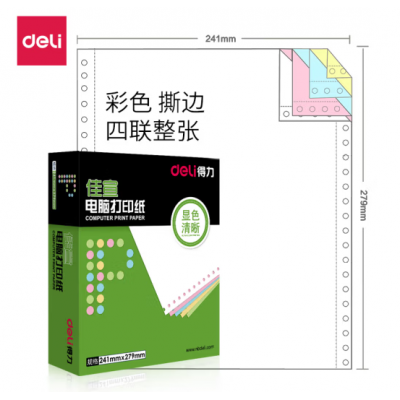 首页 > 纸及纸质品 > 纸及纸板(不包含复印纸) > 得力 deli 佳宣 J241-4电脑打印纸(1/3CS彩色撕边)(盒)整张彩色撕边针式打印票据送货单复印纸