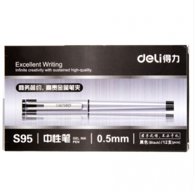首页 > 办公用品 > > 得力(deli)S95 中性笔0.5mm子弹头 黑色 12支/盒学生用男士粗杆黑色ins简约书写水笔签字笔