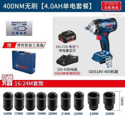 博世(BOSCH)无刷电动扳手GDS18V-400冲击扳手汽车风炮博士电动工具 400牛电动扳手一电一充4.0安时SKU:yzwhyp870853