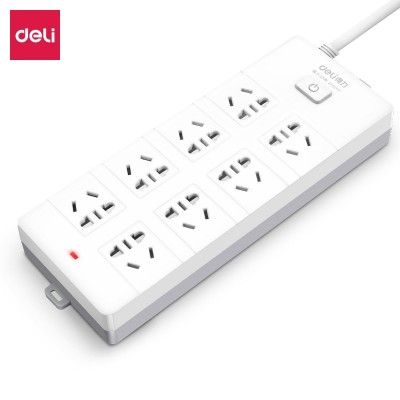 得力PU18263-44插座_8组_5米_PVC袋装(白)(只)安全插座/插排/插线板/接线板/排插/拖线板 总控开关