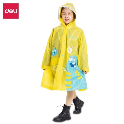 得力16543儿童雨衣(黄色S)(套)学生雨披斗篷式透明雨衣