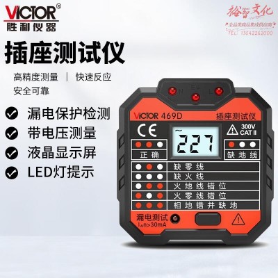 胜利仪器(VICTOR)插座测试仪 插头电源检测器 验电器 电源极性测电器 漏电插座仪 VC469DSKU:yzwhyp870969