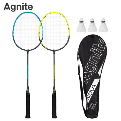 安格耐特F2136-98铁合金分体羽毛球拍(蓝+绿)(2支/副)(带三球)双拍超轻防滑耐