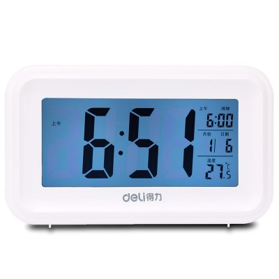 得力8801 多功能电子钟(白)15*5*9cm多功能闹钟 学生背光电子钟时钟儿童男女孩多功能起床神器 大气简约温湿度计显示