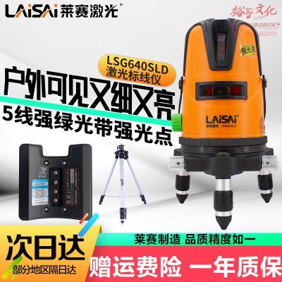 LAiSAi莱赛激光绿光水平仪LSG640SLD5线带强光点可打斜线高精度标线放线 [升级款]5线3点强绿光 三脚架SKU:yzwhyp871484