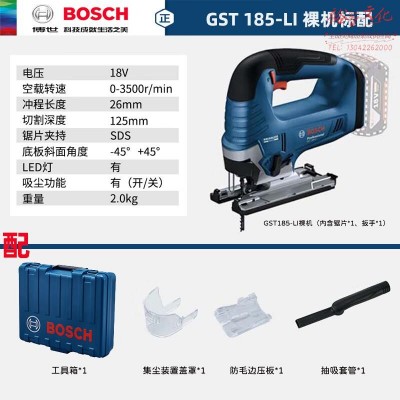 博世(BOSCH)专业锂电无刷充电式曲线锯木工工具锯子手电锯木工锯GST185-LI 官方标配(不含电池、充电器)SKU:yzwhyp871510