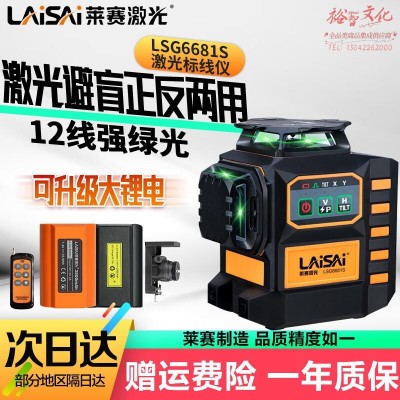 LAiSAi莱赛激光水平仪红绿光12线LSG6681S电子调平正反两用贴墙地带遥控 12线绿光地墙仪标配SKU:yzwhyp871538