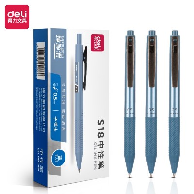 得力S18 按动办公中性笔0.5mm子弹头(臻顺滑)(蓝)(12支/盒)办公水笔学生签字笔臻顺滑系列考试用笔