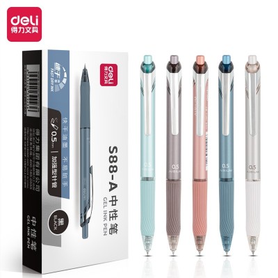 得力S88-A 学生中性笔0.5mm加强型针管(速干)(黑)(12支/盒)黑笔学生用考试办公商务专用弹簧碳素自动水笔签字按动式