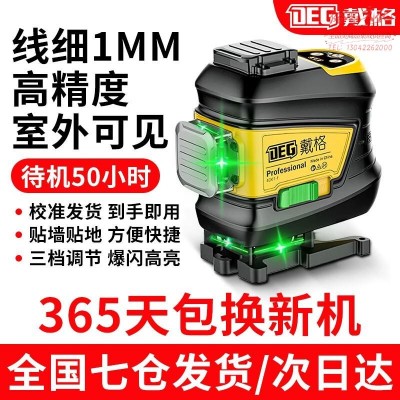 戴格水平仪绿光高精度12线自动安平强光细线贴墙仪高精准贴地仪红外线 高亮绿光【强光爆闪】简装 12线(上水平线)双电SKU:yzwhyp872280