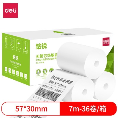 得力11818 无管芯收银纸57mm*30mm(白)(36卷/箱)