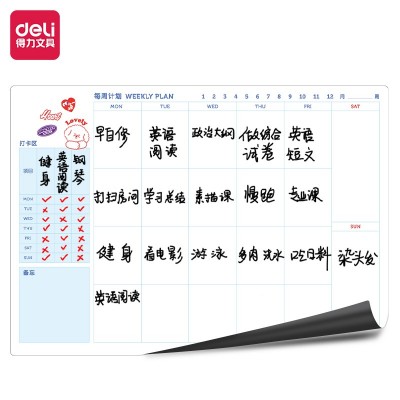 首页 > 办公用品 > 文具 > 得力8789周计划表420*300mm(蓝色)幼儿园小学生儿童成长自律表软磁铁白板