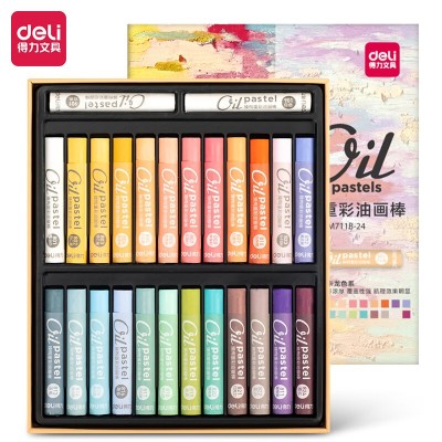得力72131-24_24色马卡龙色重彩油画棒(混)(盒)马卡龙色儿童画画蜡笔套装 绘画油彩棒 中考考试礼物