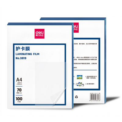 首页 > 办公用品 > 文具 > 得力3819护卡膜(透明)220*305mm A4 100张/包A4快劳夹打孔袋塑料透明活页资