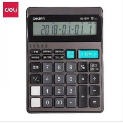 得力1554语音查数计算器(单位:台)深灰可查数后退修正语音计算器 真人语音播报计算机