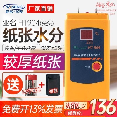 亚名HT904数字式纸张测湿仪纸张水分仪纸板水分检测仪插针式瓦楞纸箱测量含水率 尖头SKU:yzwhyp873339