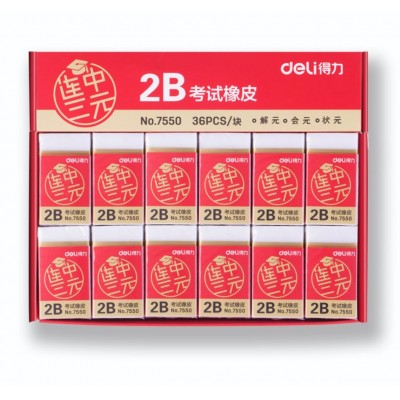 得力7550橡皮擦(白)36块 连中三元系列学生2B考试白色橡皮擦