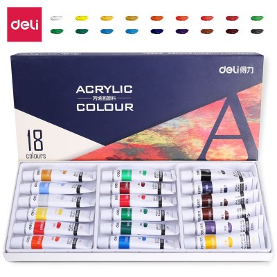 得力(deli)73857 美术绘画18色丙烯颜料 盒装 5盒/组画画丙烯画色彩写生室外墙绘diy手绘儿童成人 美术绘画工具 画具画材