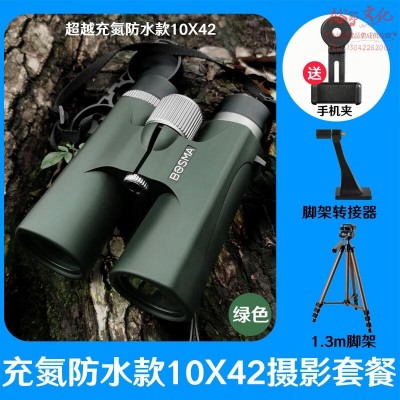 博冠(BOSMA)高清双筒望远镜国产充氮防水演唱会球赛旅行探险观景观月观星观鸟 【绿】10X42充氮防水版 1.3m脚架SKU:yzwhyp874324