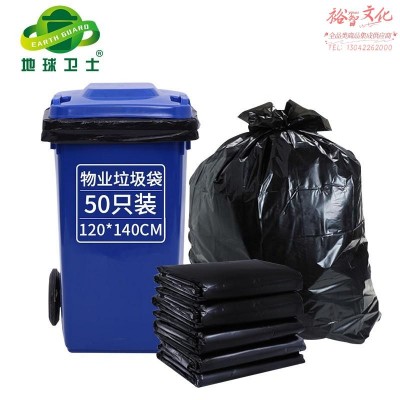 地球卫士 户外垃圾袋干湿分类大号商用物业酒店大垃圾袋加厚120*140cm平口黑色大容量50只装SKU:yzwhyp874401