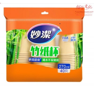 妙洁(MIAOJIE) 妙洁竹纸杯本色一次性水杯子加厚家用办公商用270ml 270ml*40只SKU:yzwhyp874433
