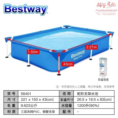 首页 > 装具 > 船帆、风帆和野营用等物品 > Bestway百适乐 儿童游泳池家用 大号戏水池家用户外庭院别墅私人泳池2.21m*1.50m*0.43m 56401SKU:yzwhyp874849