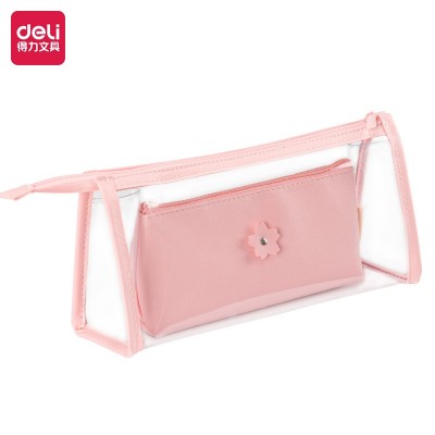 得力66606 光樱下多用途笔袋(粉)(只)拉链文具袋学生考试笔袋铅笔袋