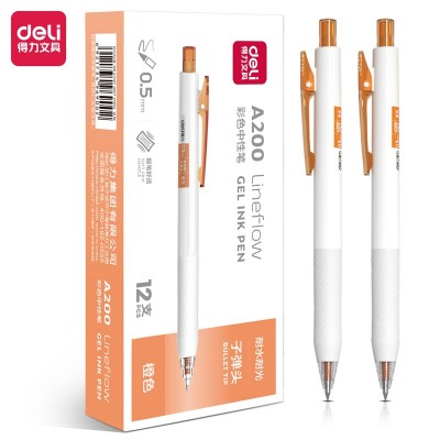 得力A200蜜糖色中性笔0.5mm子弹头(橙色)(橙色)12支/盒中性笔彩色按动笔学生手账日记签字笔
