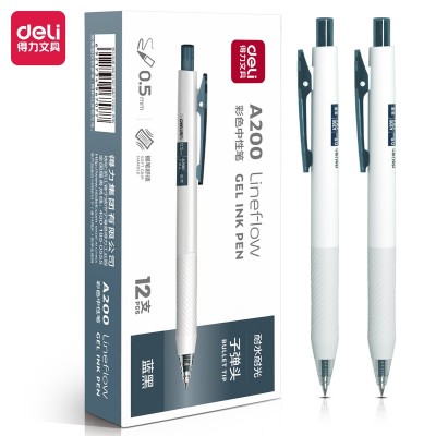 得力A200蜜糖色中性笔0.5mm子弹头(蓝黑)(蓝黑)12支/盒中性笔彩色按动笔学生手账日记签字笔