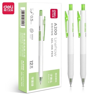 得力A200蜜糖色中性笔0.5mm子弹头(苹果绿)12支/盒中性笔彩色按动笔学生手账日记签字笔