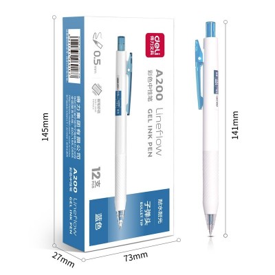 得力A200蜜糖色中性笔0.5mm子弹头(浅蓝)12支/盒中性笔彩色按动笔学生手账日记签字笔