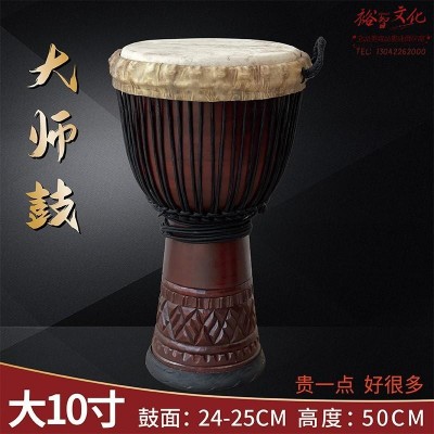 非洲鼓成人专业演奏演出大师鼓教学打击乐器老山羊皮印尼非洲手鼓 大10寸深棕色翻皮(雕刻图案随机)SKU:yzwhyp875473