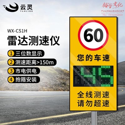 云灵雷达测速仪雷达测速仪LED显示屏CS1H高速公路园区超速预警提示牌 3位数市电款抱箍WX-CS1HSKU:yzwhyp875551