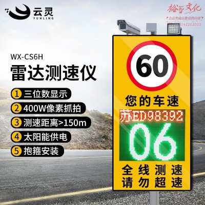 风途雷达测速仪电子抓拍太阳能限速警示牌高速公路园区超速拍照记录仪 3位数太阳能WX-CS6HSKU:yzwhyp875587