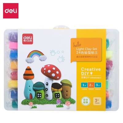 得力67846轻型粘土(混)儿童橡皮泥彩泥太空泥 24色粘土