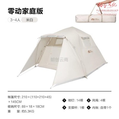 牧高笛(MOBIGARDEN)帐篷 户外露营大空间速开搭建双层帐零动家庭版 EXZQU61004 米白SKU:yzwhyp875767
