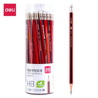 得力58173_50支HB皮头六角杆高级铅笔(混)(50支/筒)学生素描绘图铅笔