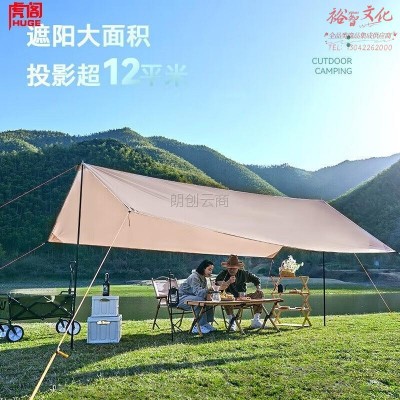 虎阁 天幕帐篷 户外遮阳棚防晒防蚊沙滩帐篷防雨防水遮阳棚布野外露营野营烧烤 流沙金-方形天幕(3*5米)SKU:yzwhyp875792