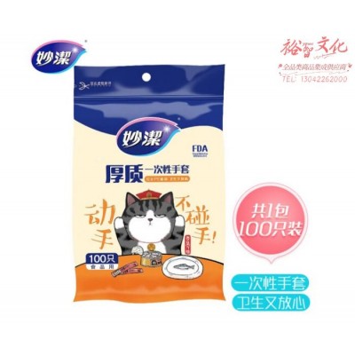 妙洁 一次性手套100只 抽取式厚实塑料手套餐桌野餐适用SKU:yzwhyp876079