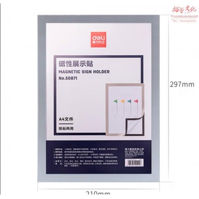 得力 A4磁性展示贴 -银色 50871SKU:yzwhyp876135