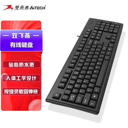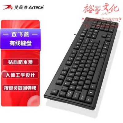 双飞燕(A4TECH) WK-100 有线键盘 办公打字用薄膜键盘笔记本外接台式电脑通用键盘104键 USB接口 黑色SKU:yzwhyp876146